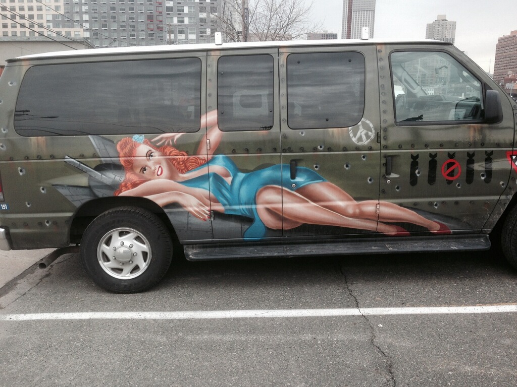 That’s right. They wanted a single woman traveling alone around the country for two months to be driving a vehicle emblazoned with scantily clad ladies in seductive poses. And LADY LUCK in big red letters down the side. Because it wouldn’t be at all suggestive for me to pull into a campground full of strangers, pull out my camp chair, and plant myself in front of THAT! A friend commented on my previous post that something I did was the height of badassery. Au contraire-driving around the country in the “Gettin’ Lucky Mobile” would be the height of bad assery. Alas, my ass, is not quite that bad. (Side note: I understand this is an homage to classic fighter planes from World War Two. I’m not dissing the Enola Gay. It worked for her.)